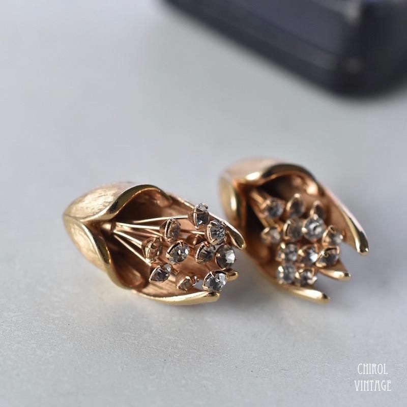 立体感のあるセンスの良いフラワーモチーフのクリップイヤリング。