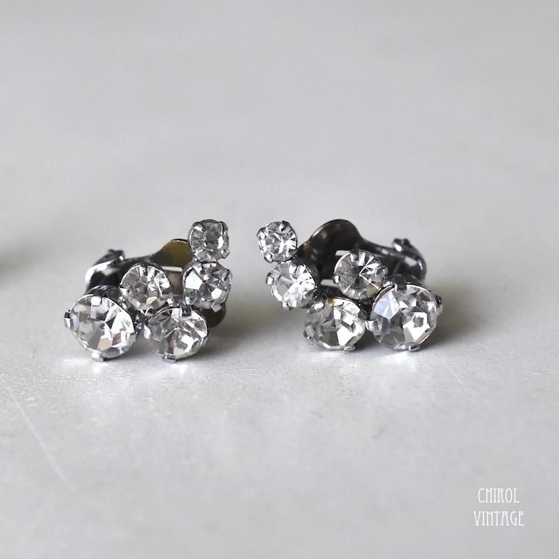 輝きの良いクリアビジューの小さなクリップイヤリング。