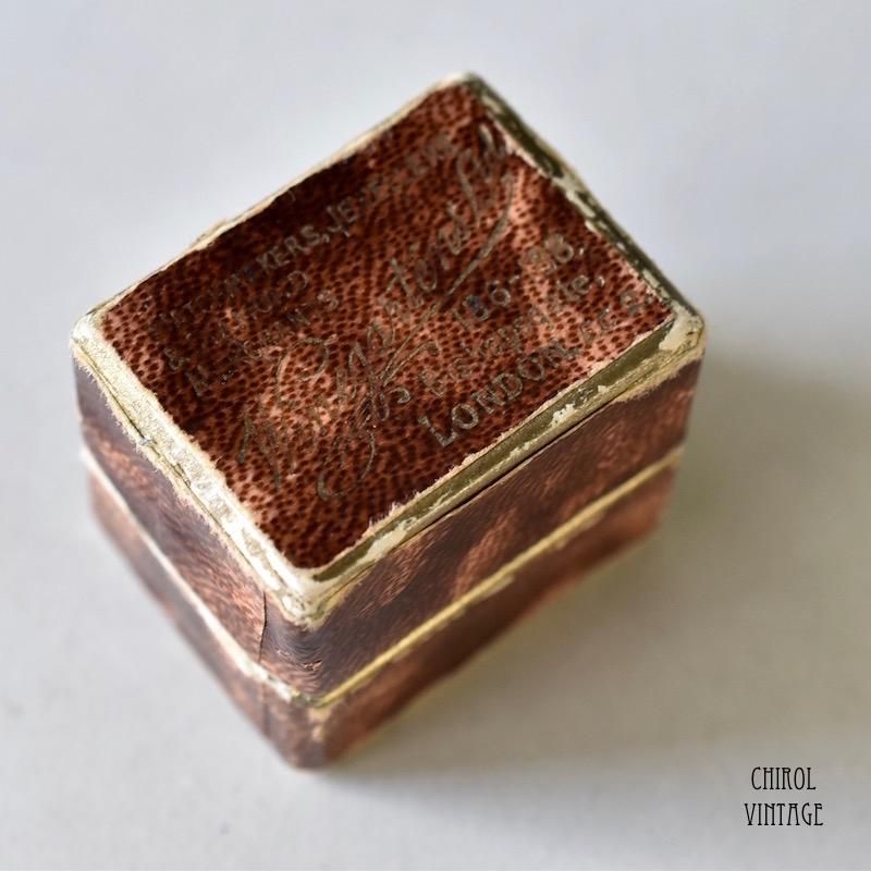 小さな長方形シェイプがアンティーク感のある、ペーパー製のレトロなリングケース。