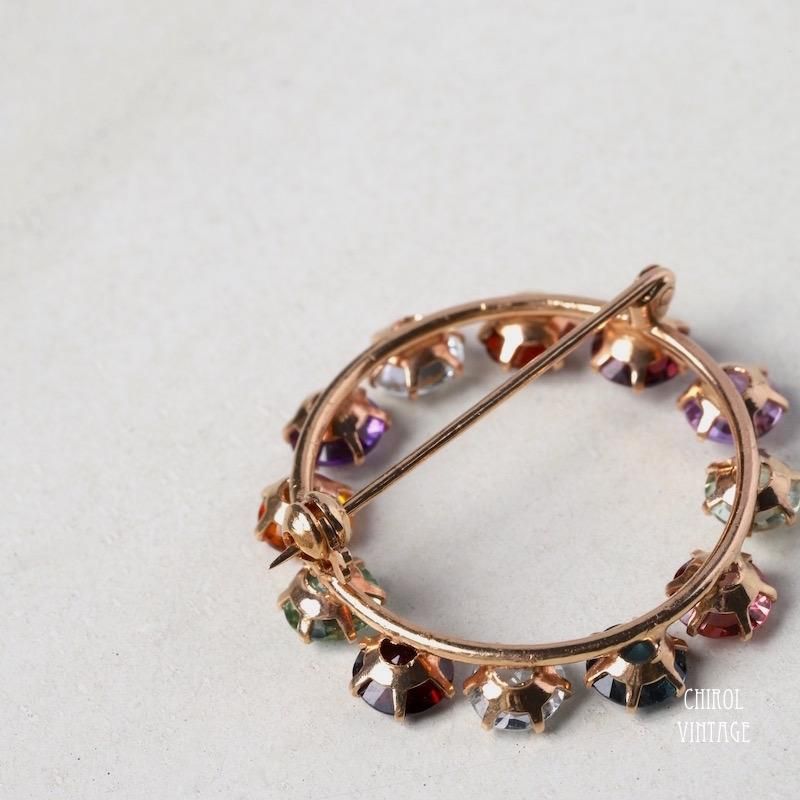 18Kゴールド カラフルジェムストーン サークルブローチ