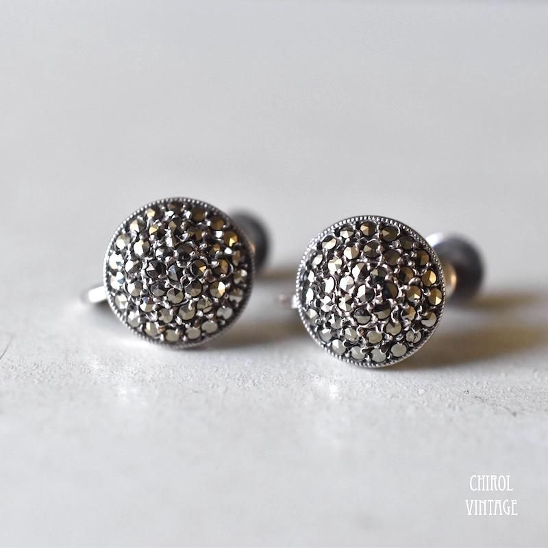 スターリンシルバーとマーカサイトのクラシックなコンビネーションのスクリューイヤリング。