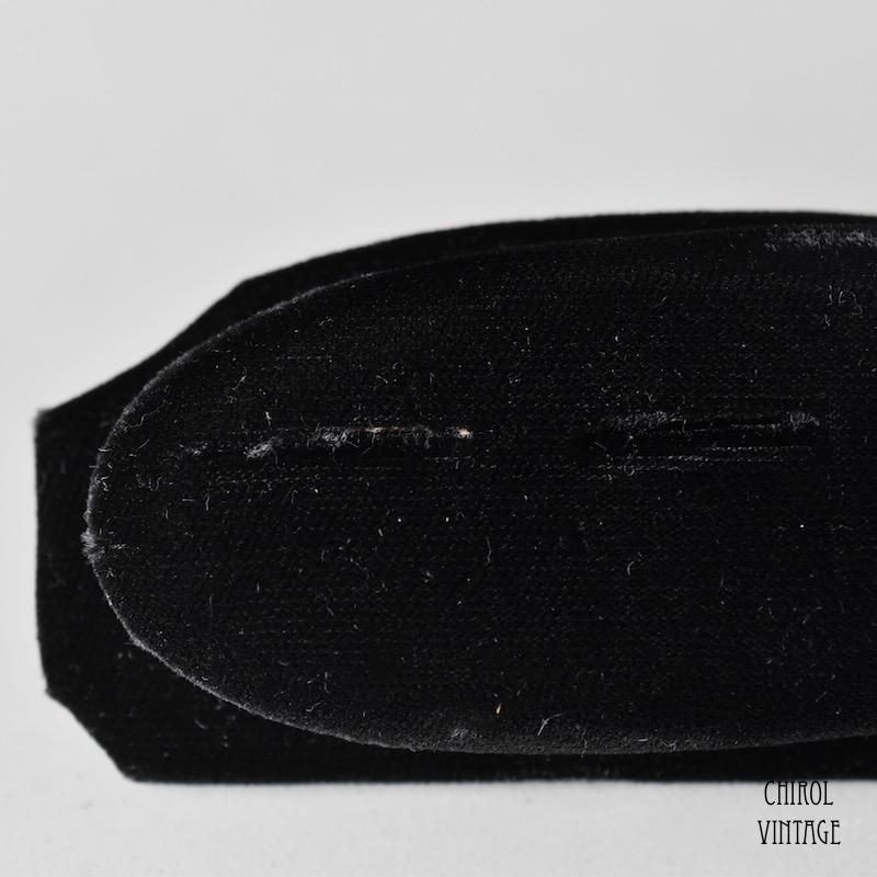 ピクチャーフレームのようなデコレティブなフレームに、オーバルのリングクッションが付いた、ブラックのベルベットのリングスタンド。