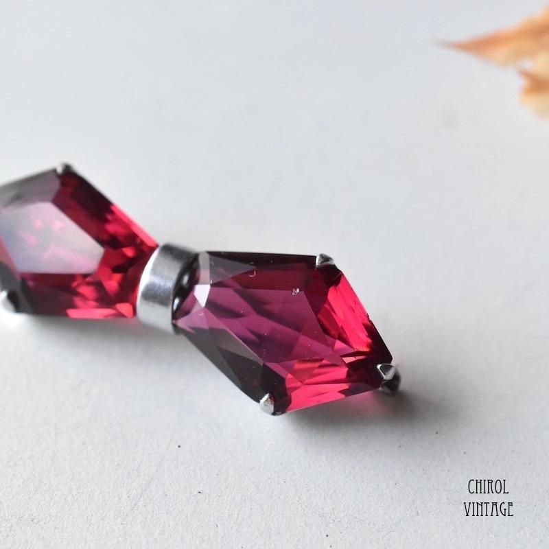 ユニークなカットのグラスで、ありきたりの素材で作られたものではない、ヴィンテージジュエリーの希少性もあるアイテム。