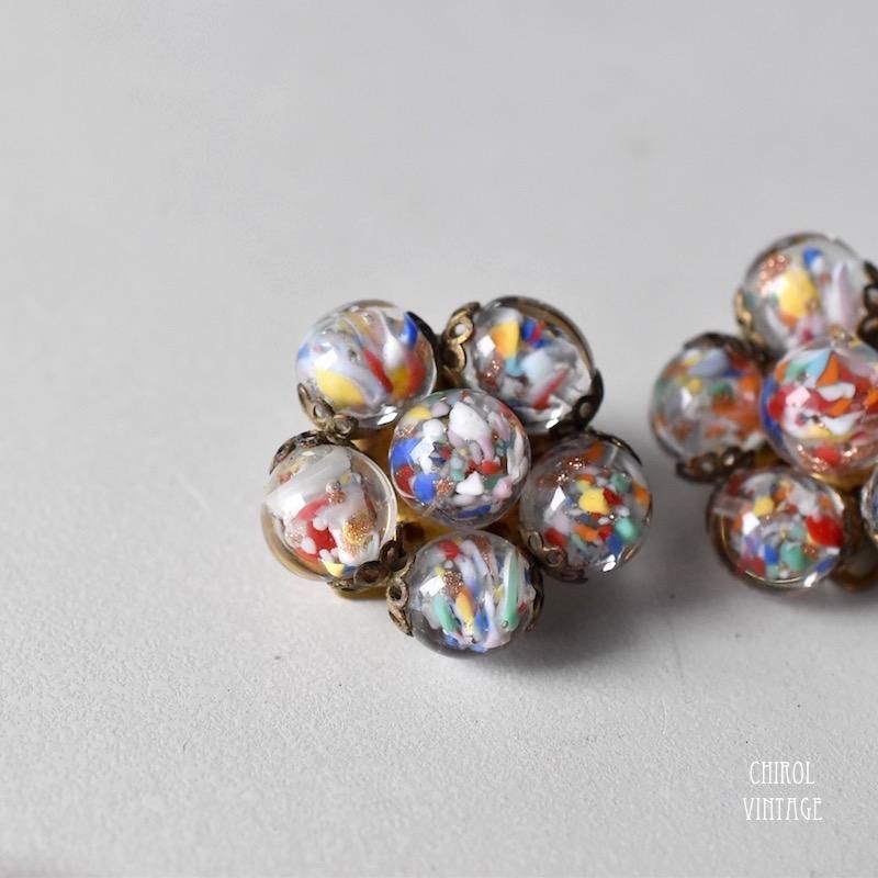 コレクタブルなヴェネチアグラスのクラスターイヤリング。