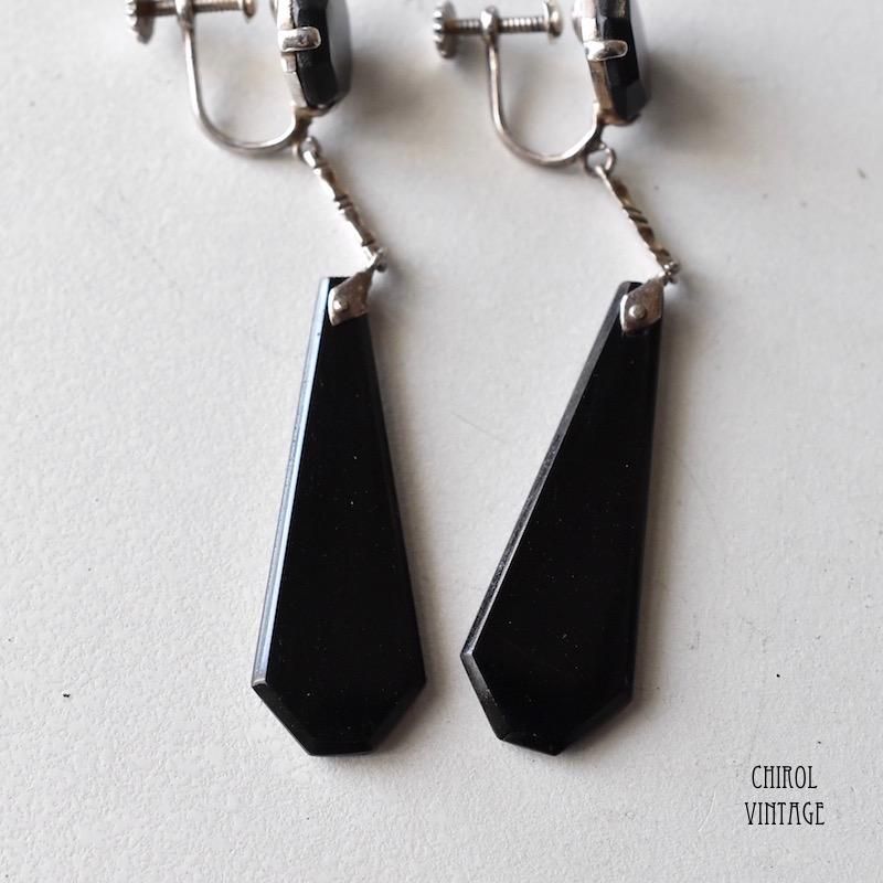 シルバーのバーでペンダントがドロップした、シックなフレンチジェットのイヤリング。