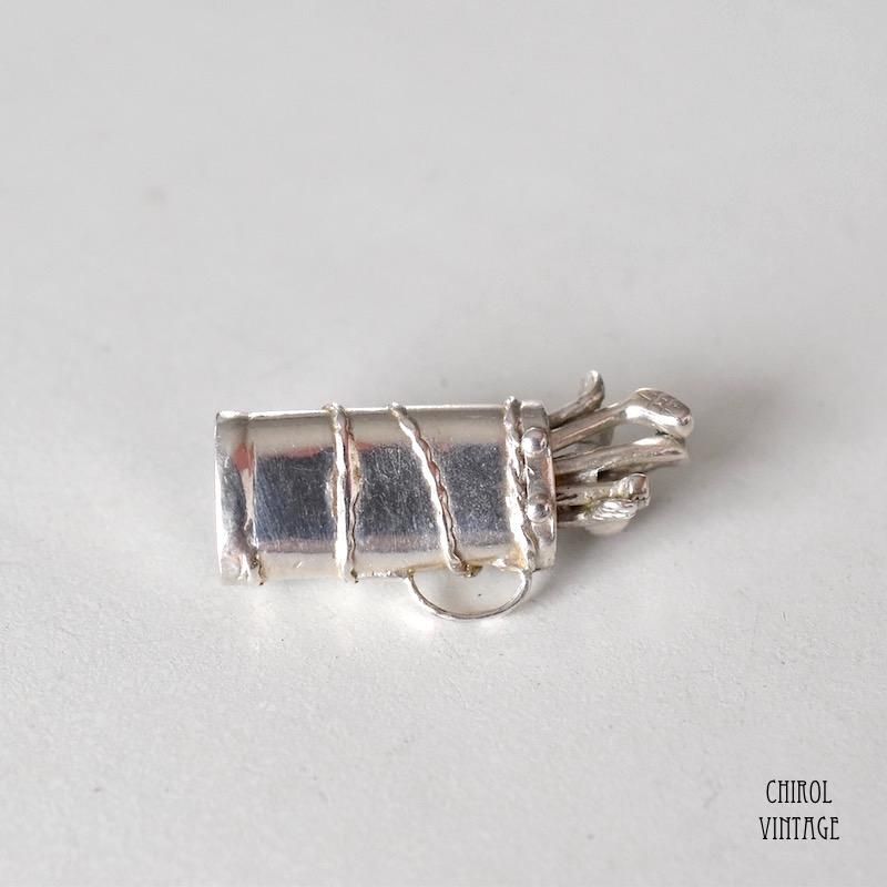 ゴルフクラブがモチーフになったノヴェルティなデザインのシルバーブローチ。