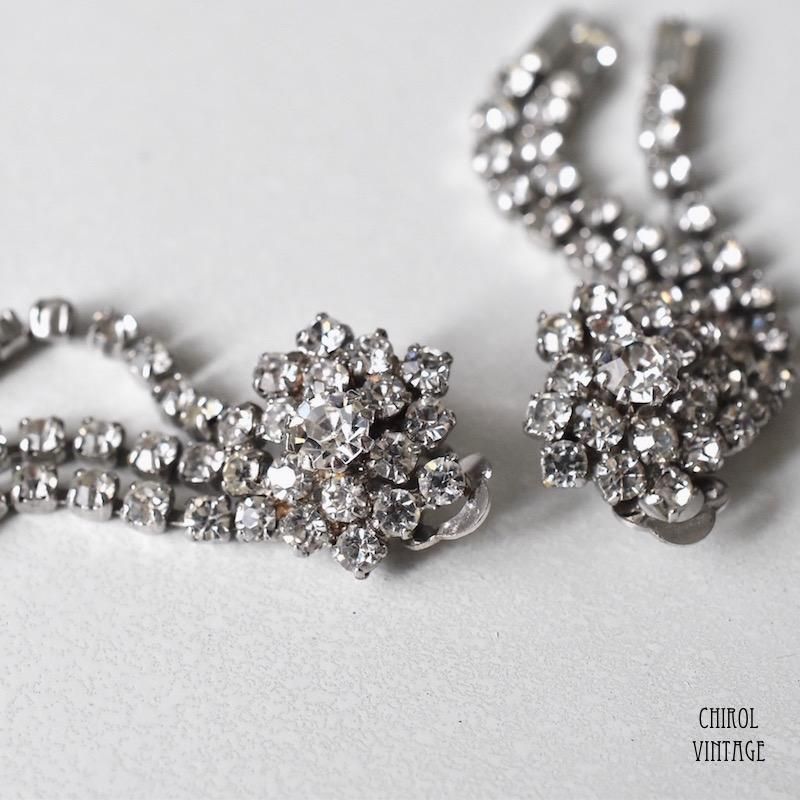 ラグジュアリーなクリアビジューのタッセルイヤリング。