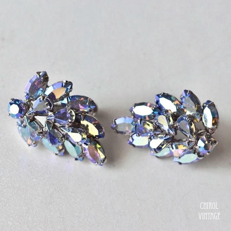 幾層もの魅惑的な輝きを放つ質の高いオーロラビジューが贅沢に用いられた、ヴァンドームのクリップイヤリング。