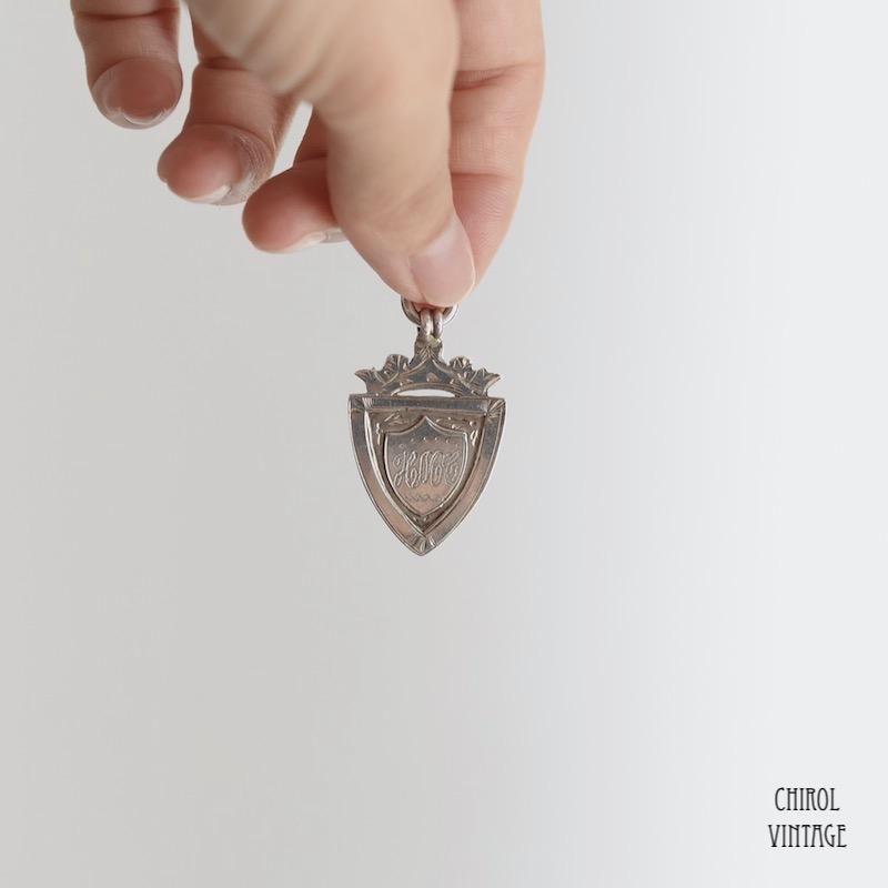 アンティーク スターリングシルバー シールドフォブ チャーム