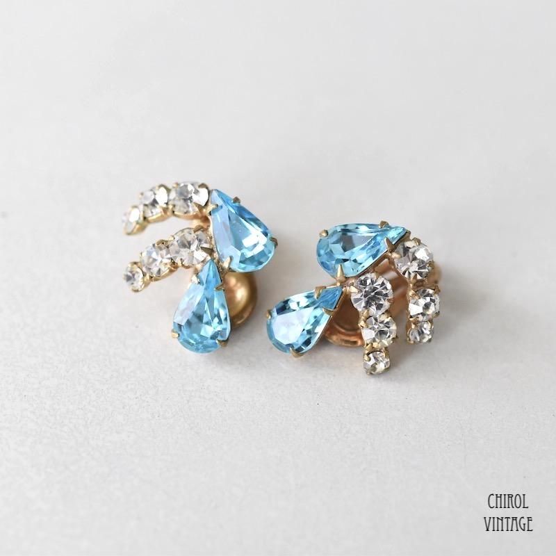 クリアxアクアブルー ペアビジューミニイヤリング