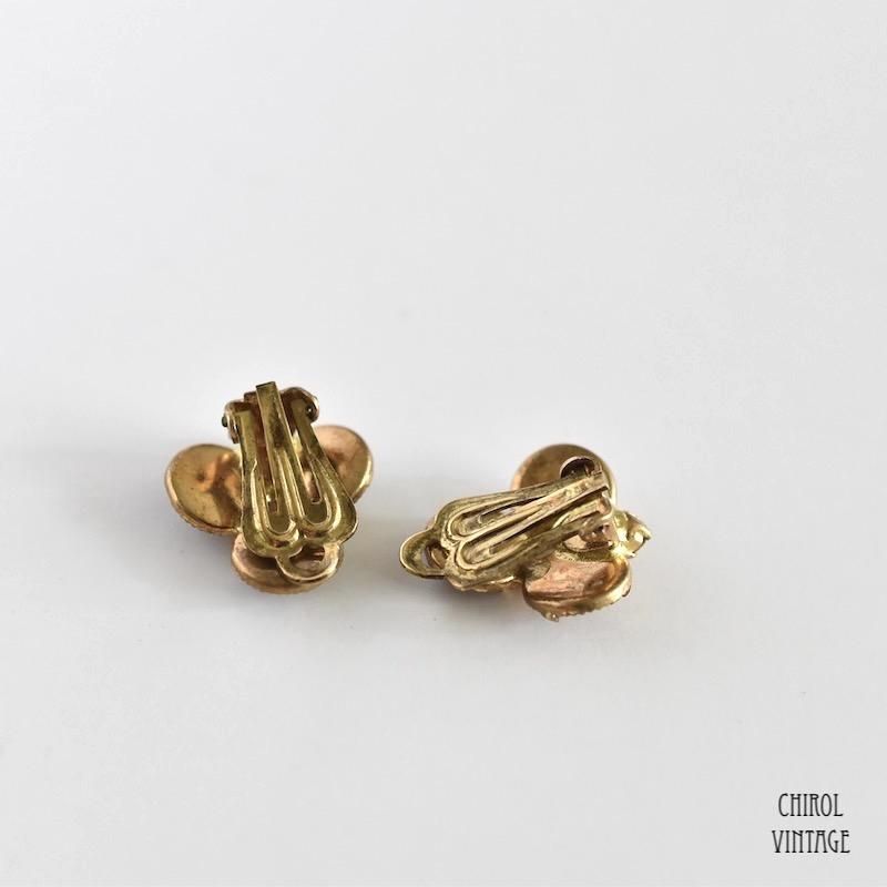 オーストリア ペールブラウンフロストグラス トリプルデイジーイヤリング