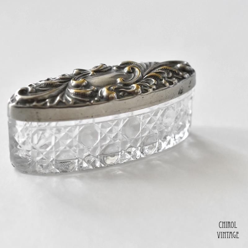 オブロングの形が可愛い、小さなアンティークのカットグラスケース。