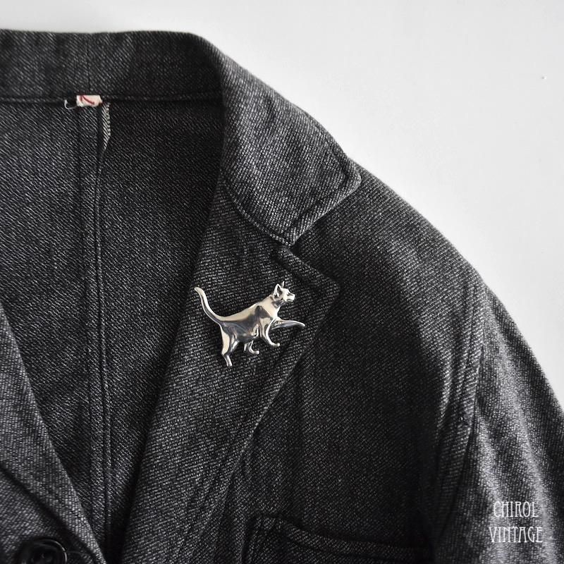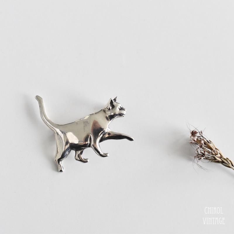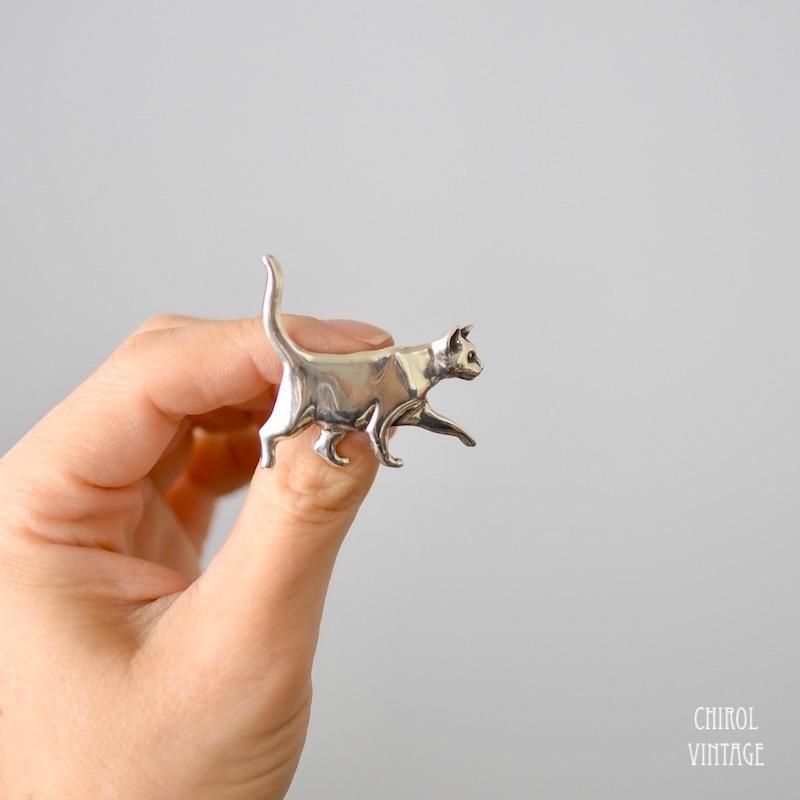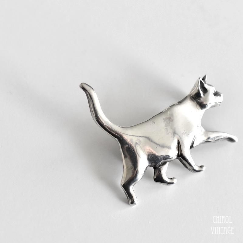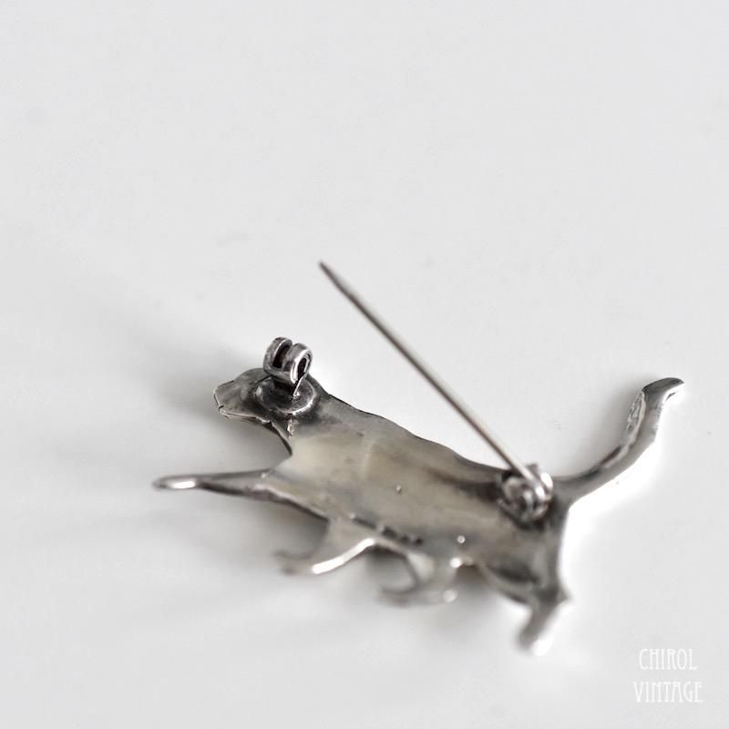 スターリングシルバー キャットブローチ