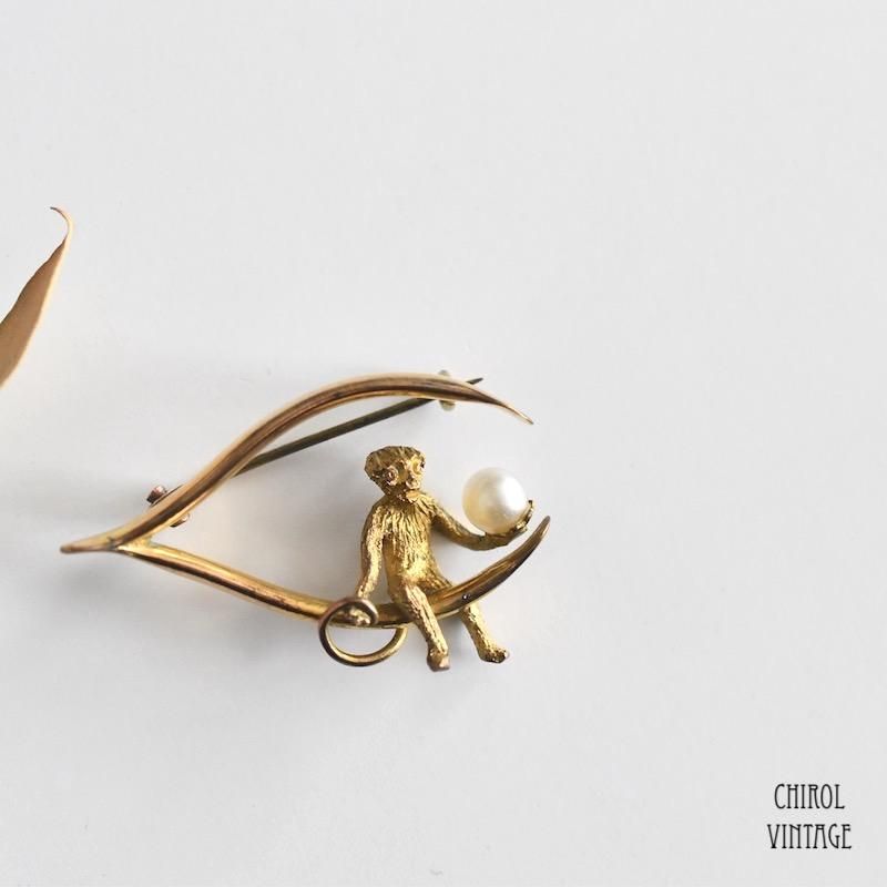 アンティークのコレクタブルなラッキーモンキーブローチ。