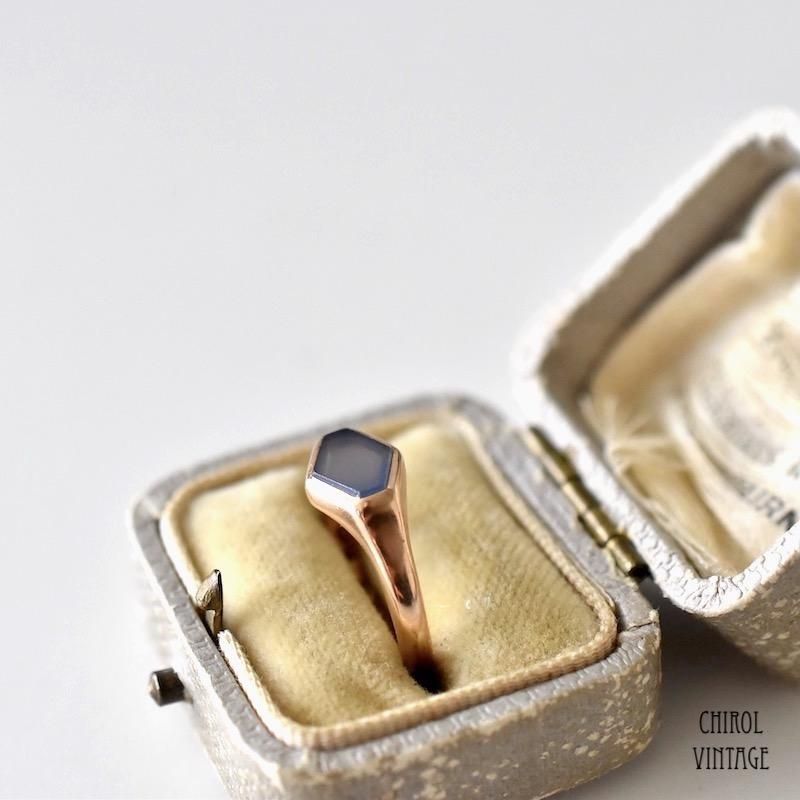 アンティーク 9Kゴールド ヘキサゴン カルセドニーリング