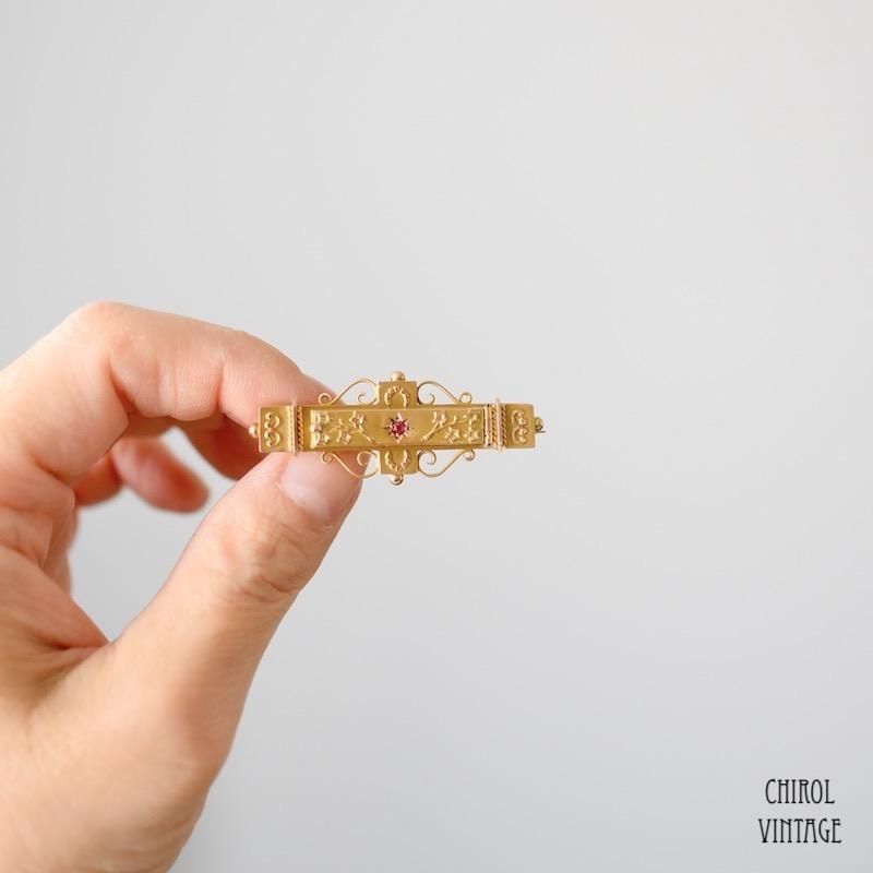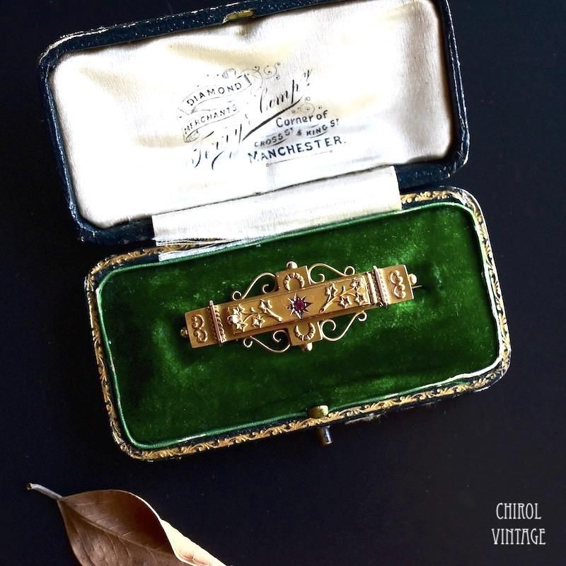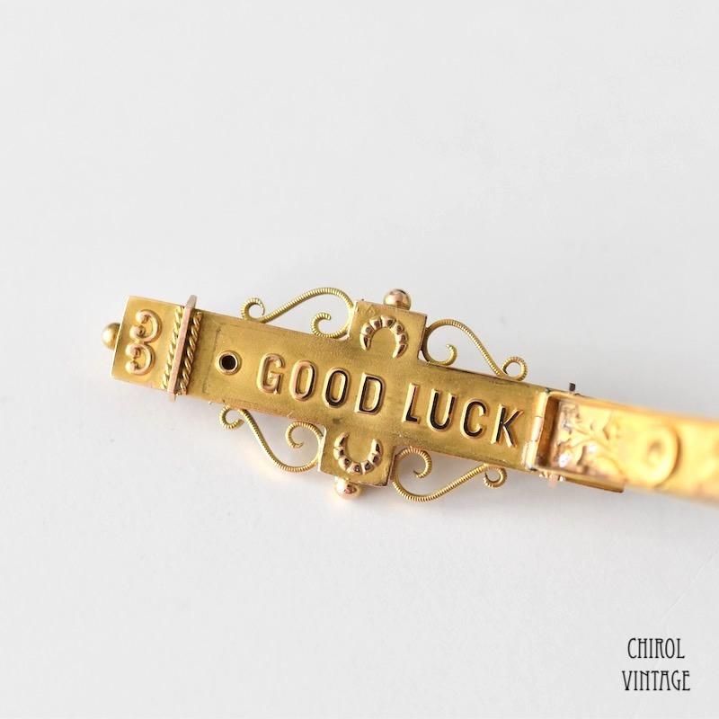 アンティーク 9Kゴールド ガーネット オープニングGood Luckブローチ