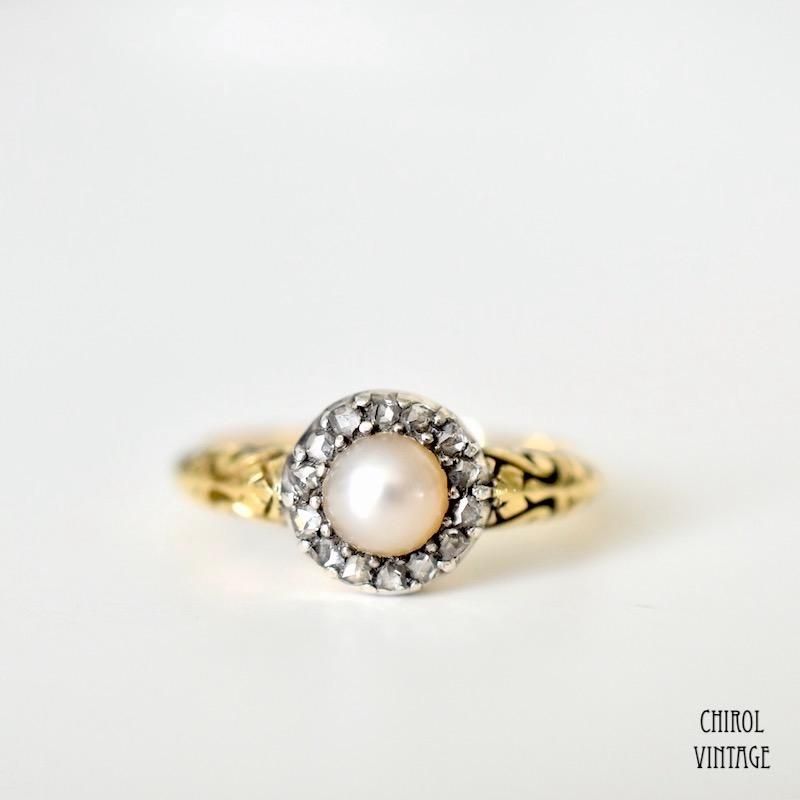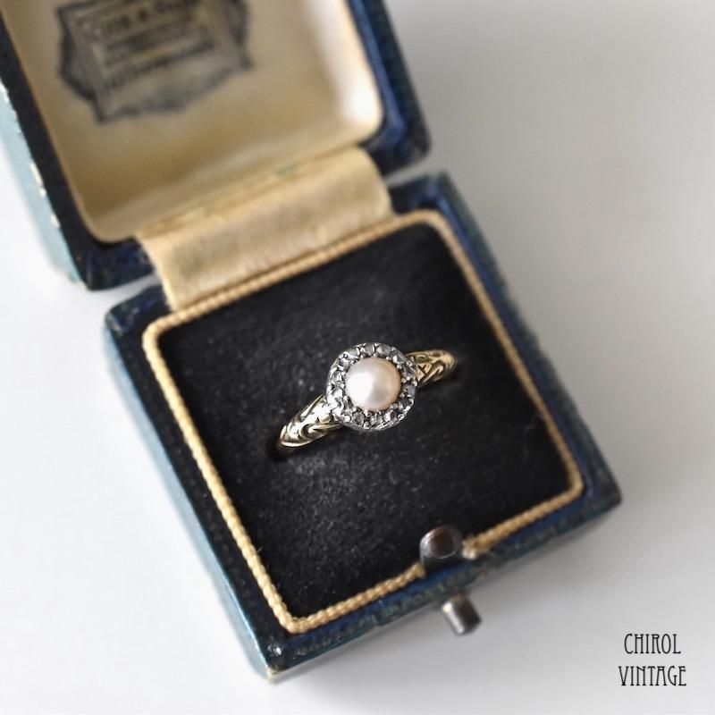 アンティーク 18Kゴールド パールxダイアモンドクラスターリング