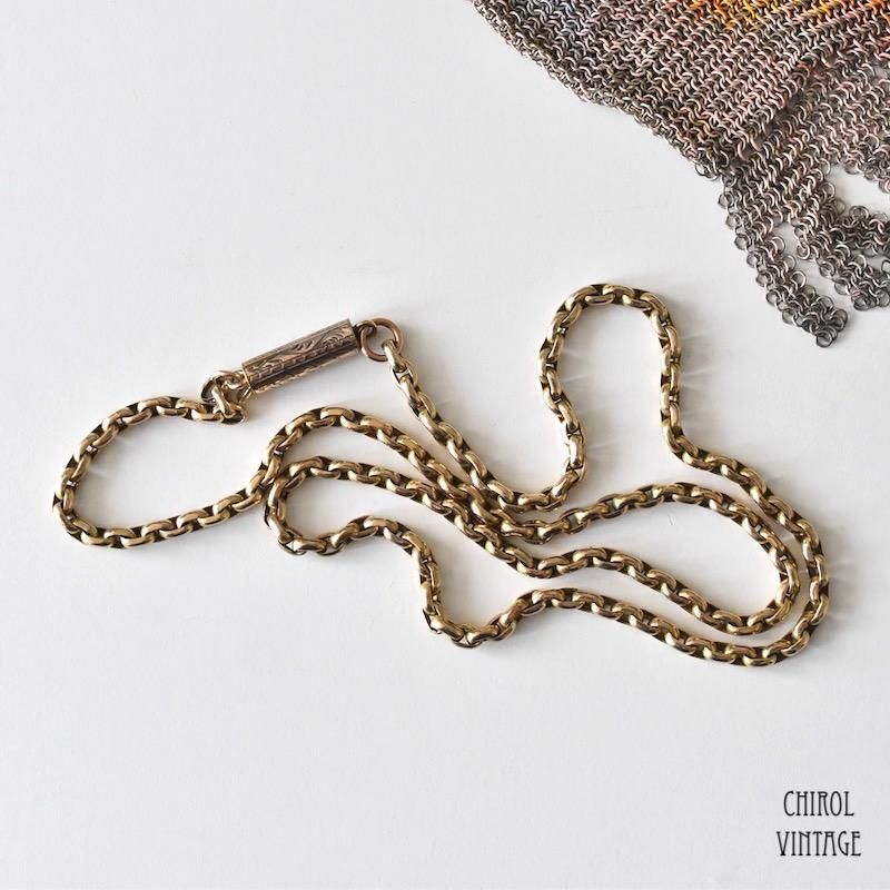 アンティーク 9Kゴールド ベルチャーチェーンネックレス エングレイヴクラスプ