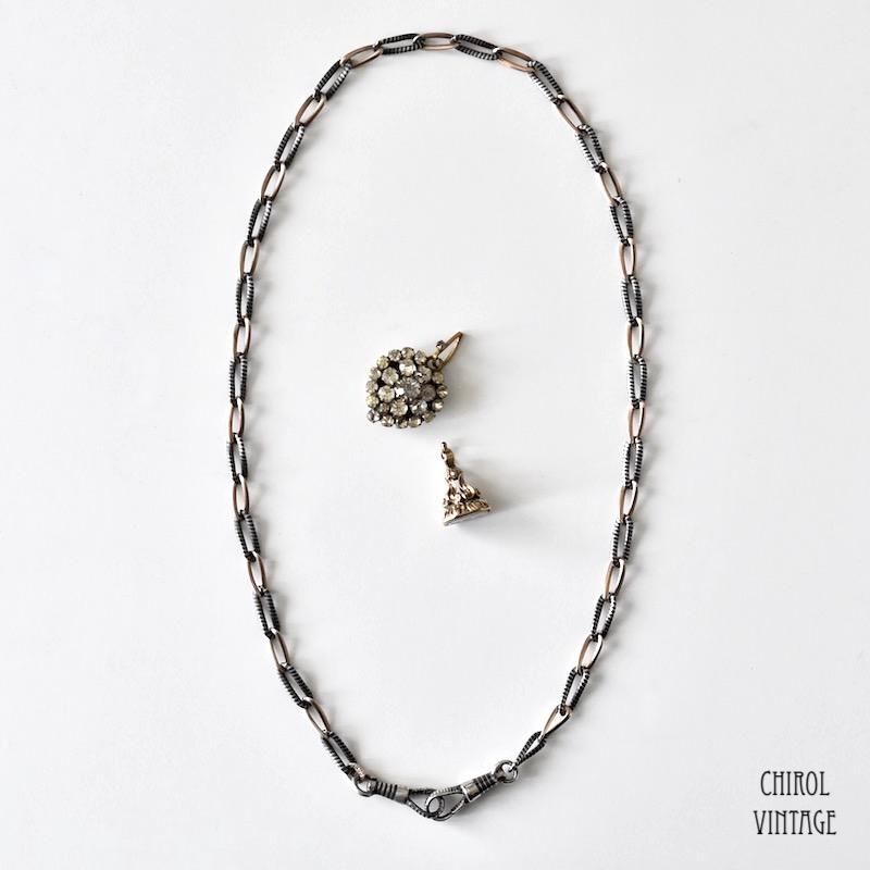 ヴィクトリアンからエドウォーディアンにかけて流行したジュエリーデザインのひとつ、ニエロを用いたデザイン性高いチェーン。
