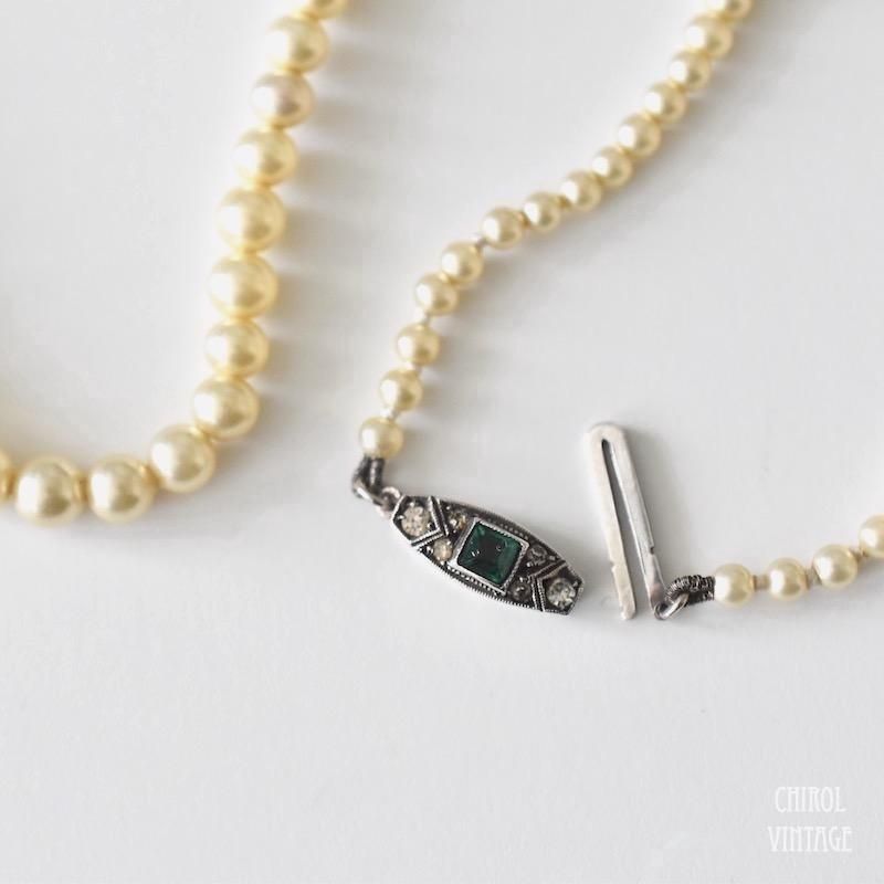 落ち着きのあるクリームカラーのグラスパールが上品な、アールデコのパールネックレス。