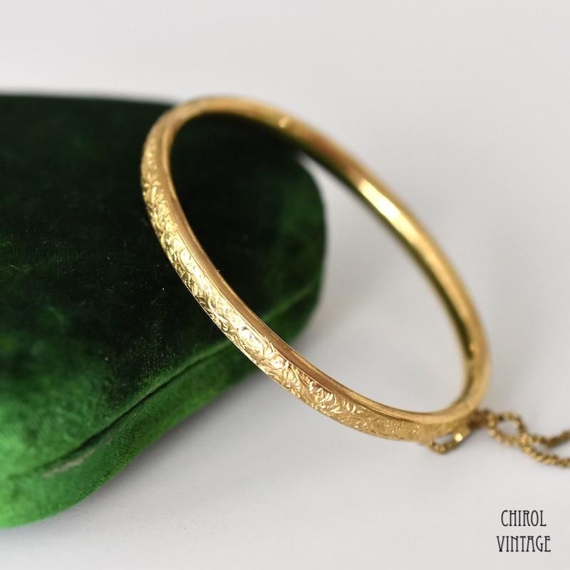 アンティークな雰囲気が魅力の細身のギルトメタルバングル。