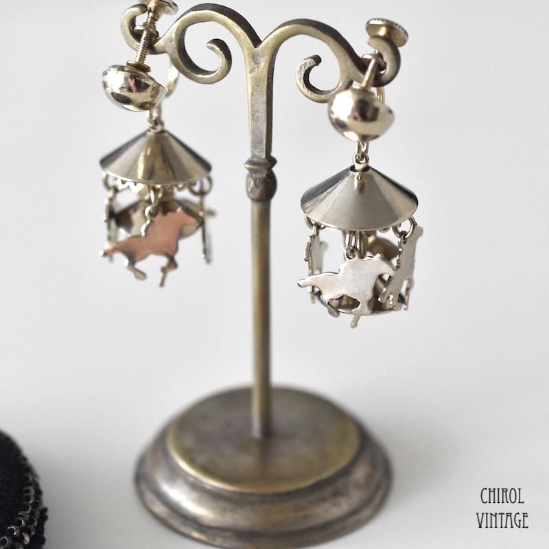 シャンデリアタイプのイヤリングは時々見かけますが、こちらは他に見たことのない、メリーゴーランドがモチーフ。