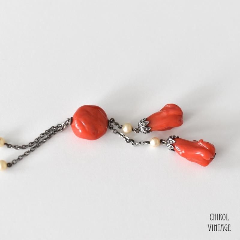 コーラルレッドグラス ネグリジェネックレス