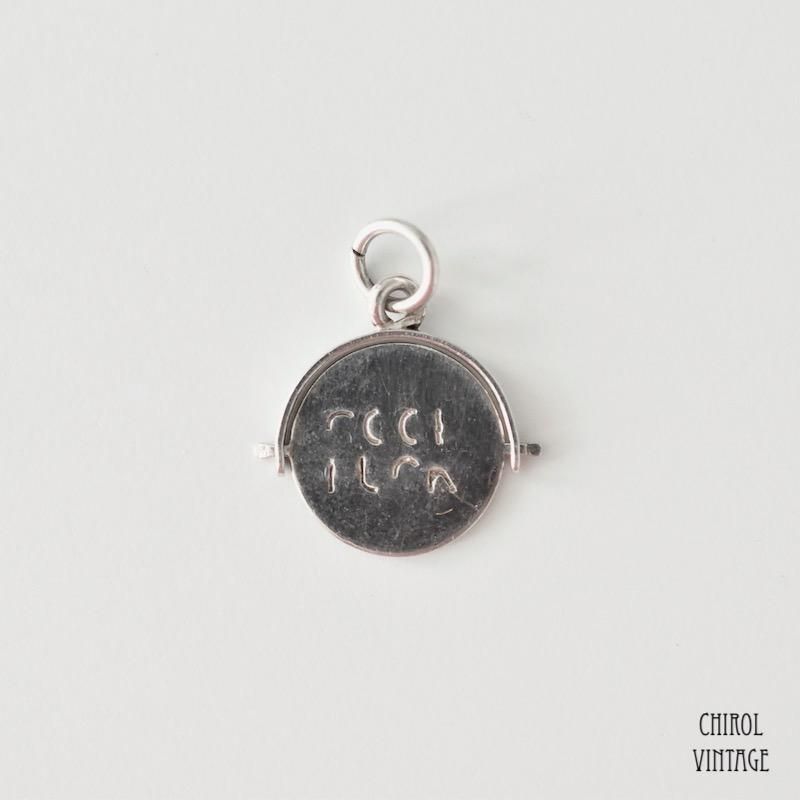 ラウンドのディスクを回転させると、"GOOD LUCK" のメッセージが現れる、プレイフルなヴィンテージシルバーチャーム。