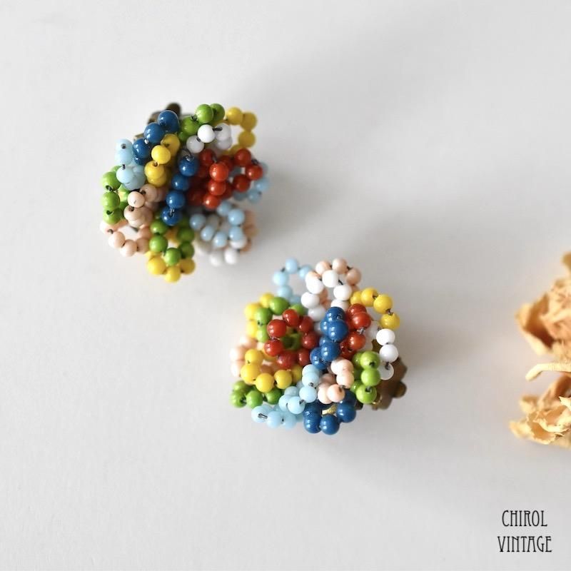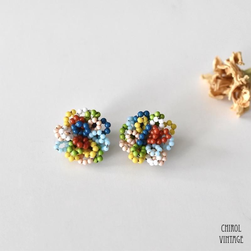 フランス カラフルシードビーズ ワイヤーフラワーイヤリング