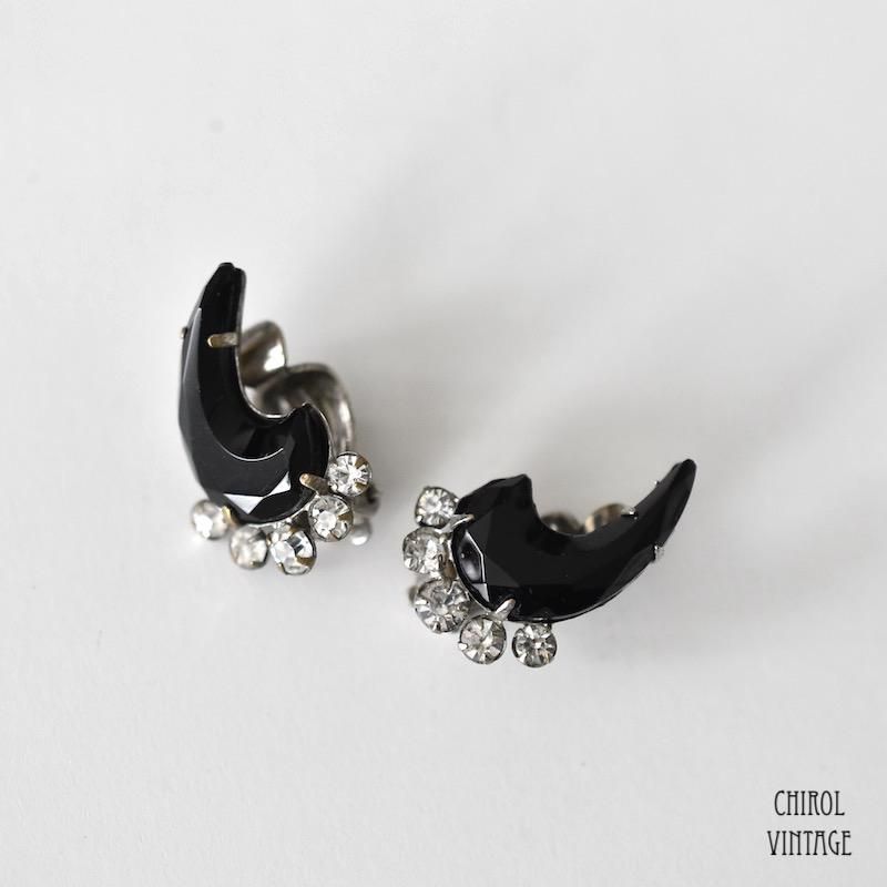 ユニークなカットのグラスを用いた、個性あるヴィンテージクリップイヤリング。