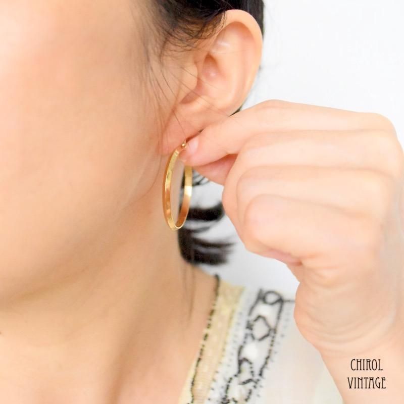 こちらは無駄のない作りで着用時にもフック部分が目立たず、フープが一層美しく際立つ一点。