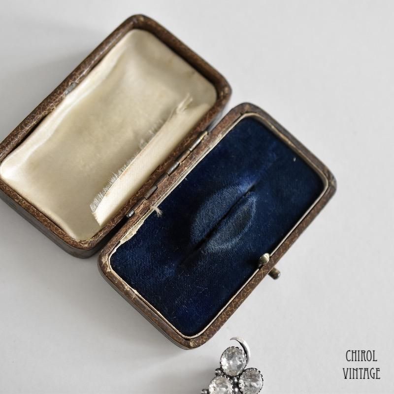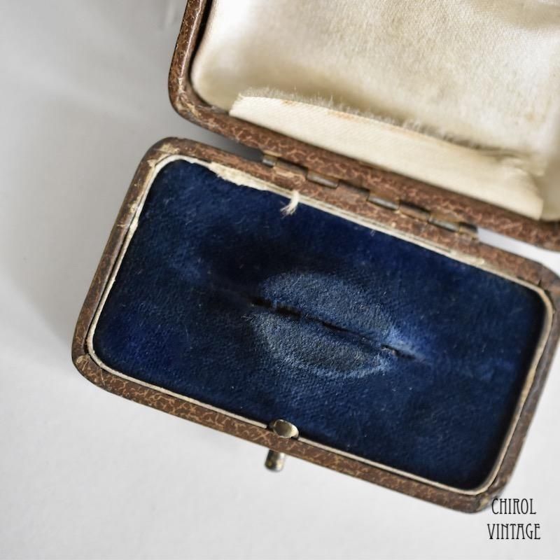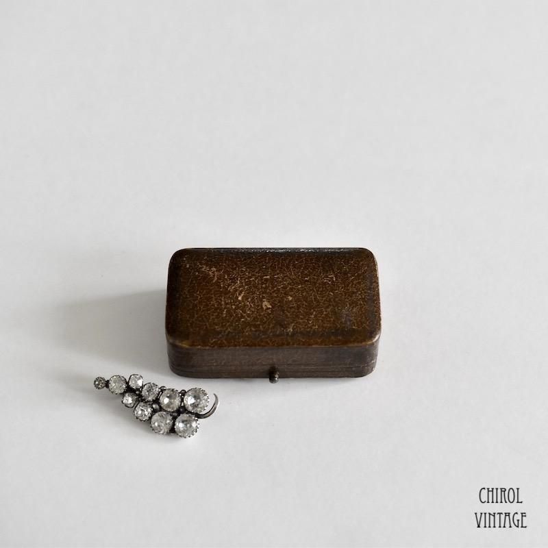 カーキブラウンのペーパー製フェイクレザーで覆われた、長方形のバーブローチケース。