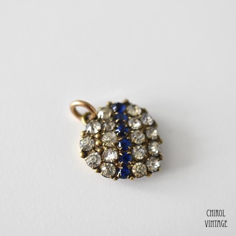 クリアハートがブルーのリボンを纏った、アンティークのチャームペンダント。