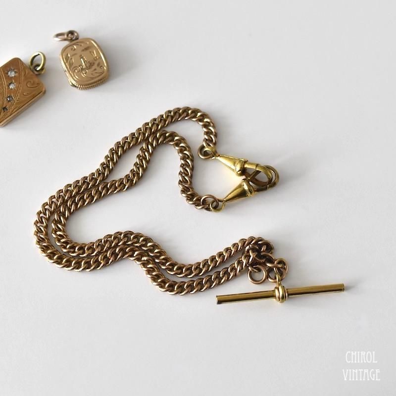 ヴィクトリアンからエドウォーディアンにかけて流行した、ポケットウォッチを身に着けるためのアルバートチェーン。
