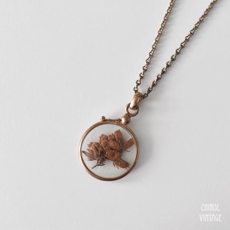 アンティーク ドライヘザー グラスロケット ロールドゴールドチェーンネックレス