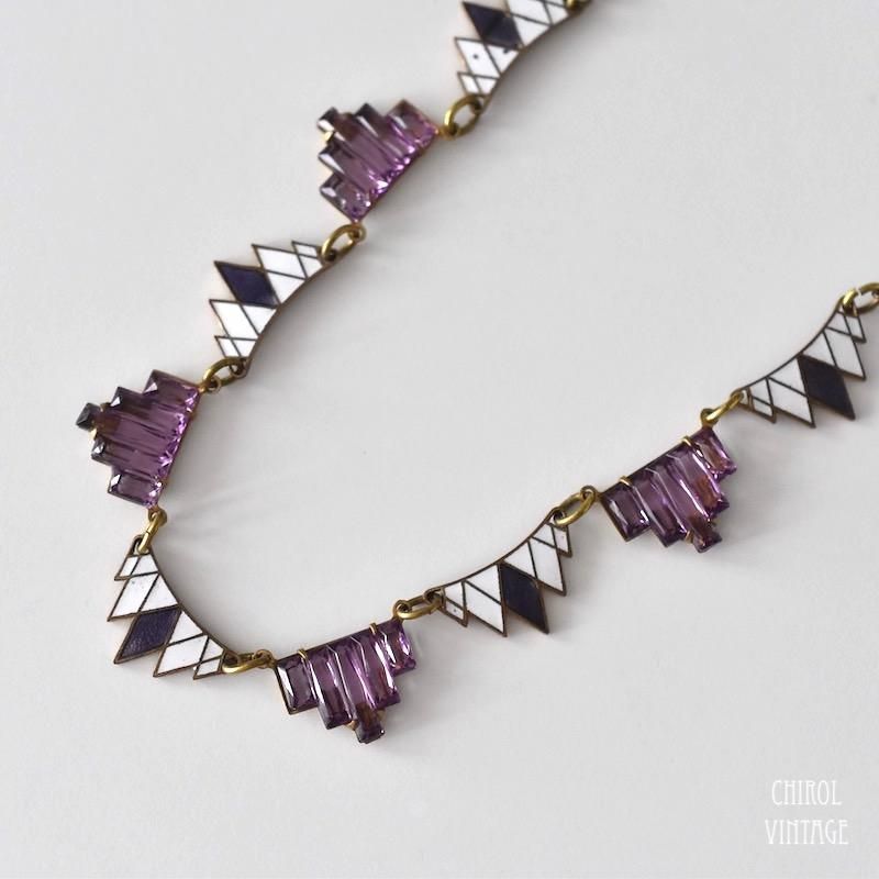 アールデコ パープルグラスxエナメルネックレス