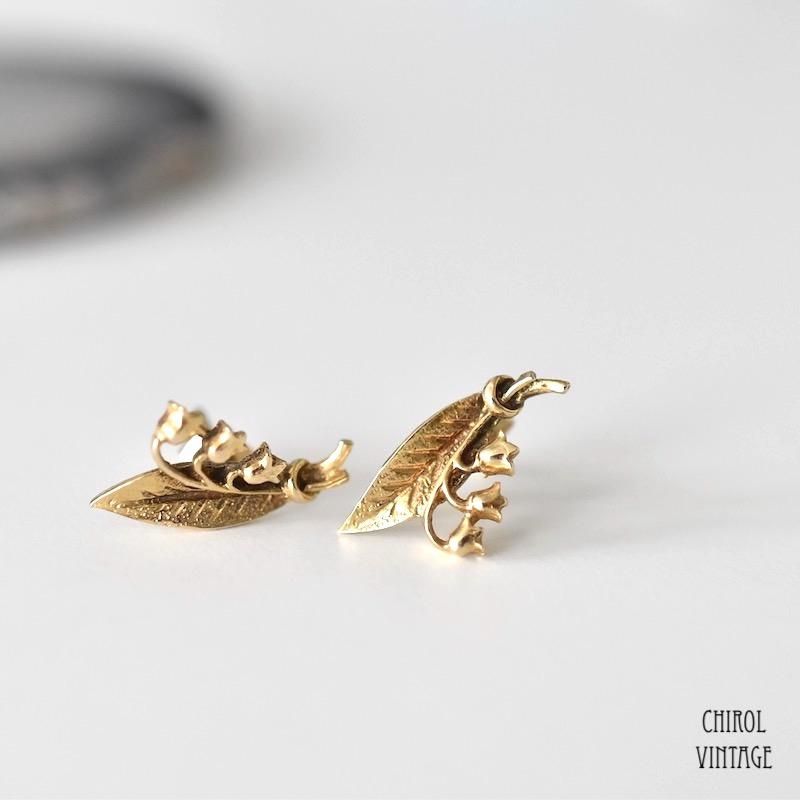 ヴィンテージ 9Kゴールド スズラン スタッドピアス