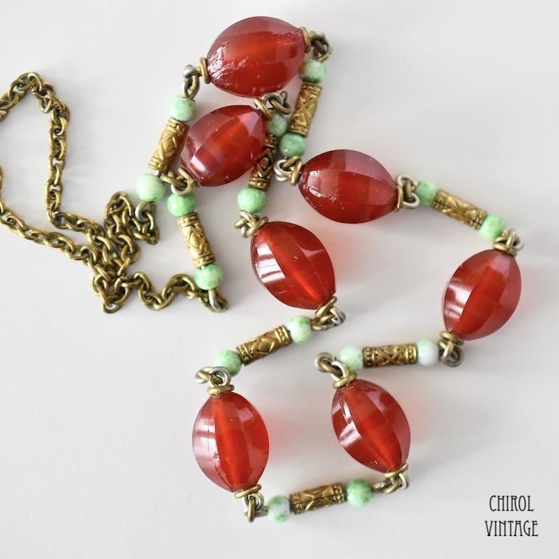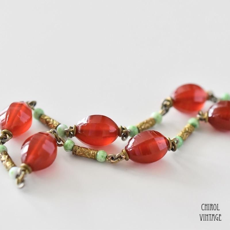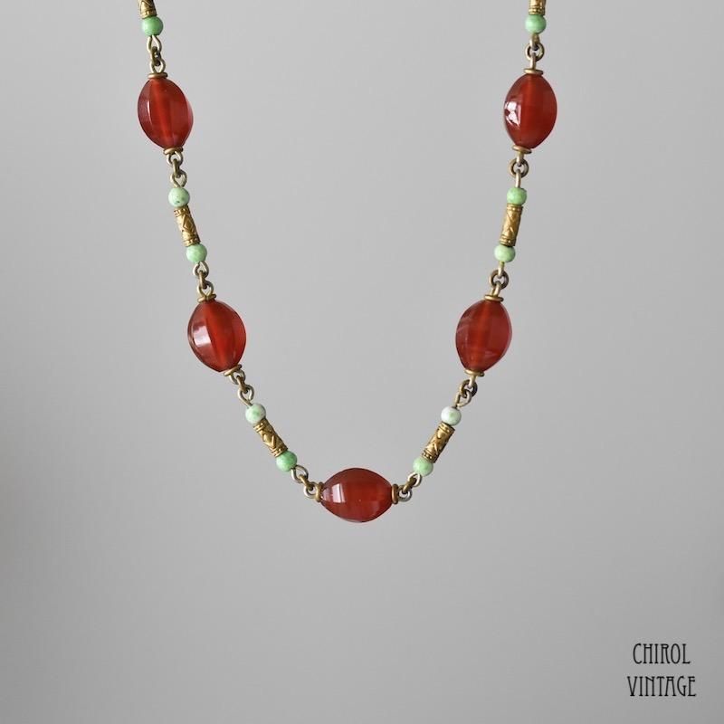エキゾチックな配色が個性ある、チェコのヴィンテージネックレス。