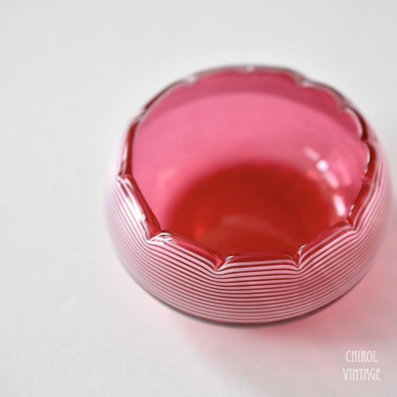 クランベリーカラーが愛らしい、アイコニックなアンティークグラスのポット。