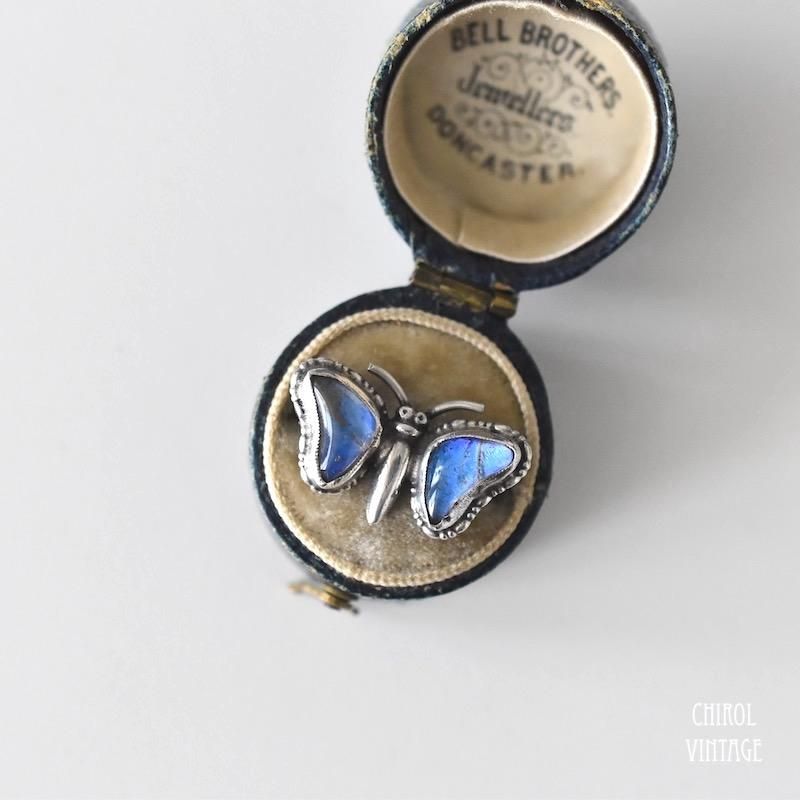 スターリングシルバーで形成されたバタフライの羽部分に実際のバタフライウィングを用いた、美しくチャーミングなデザインです。