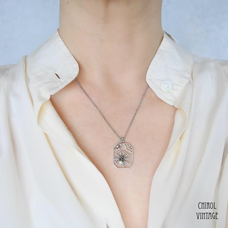 ナチュラルなシーンがひとつのピクチャーのようにジュエリーに収められた、アーティスティックなヴィンテージシルバーネックレス。