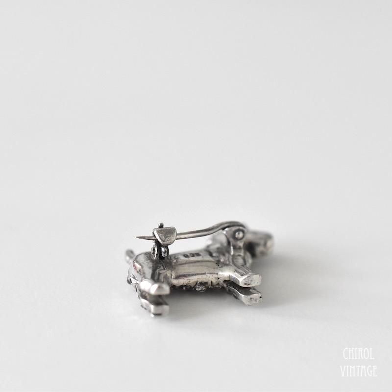 ハイグレードの935シルバーで仕立てられた、テリアがモチーフのアンティークブローチ。