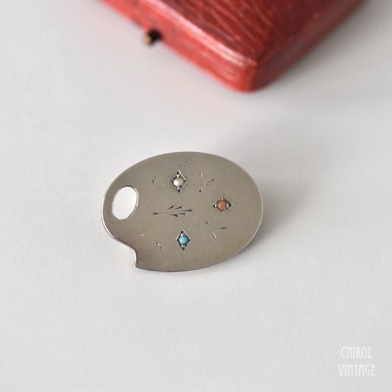 パレットがデザインされた、チャーミングなヴィクトリアンのアンティークブローチ。