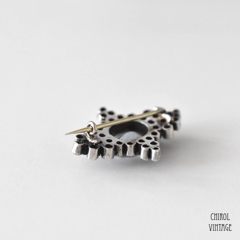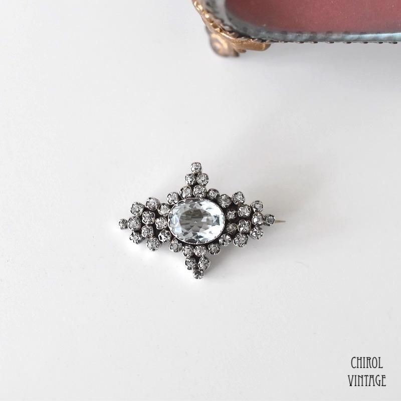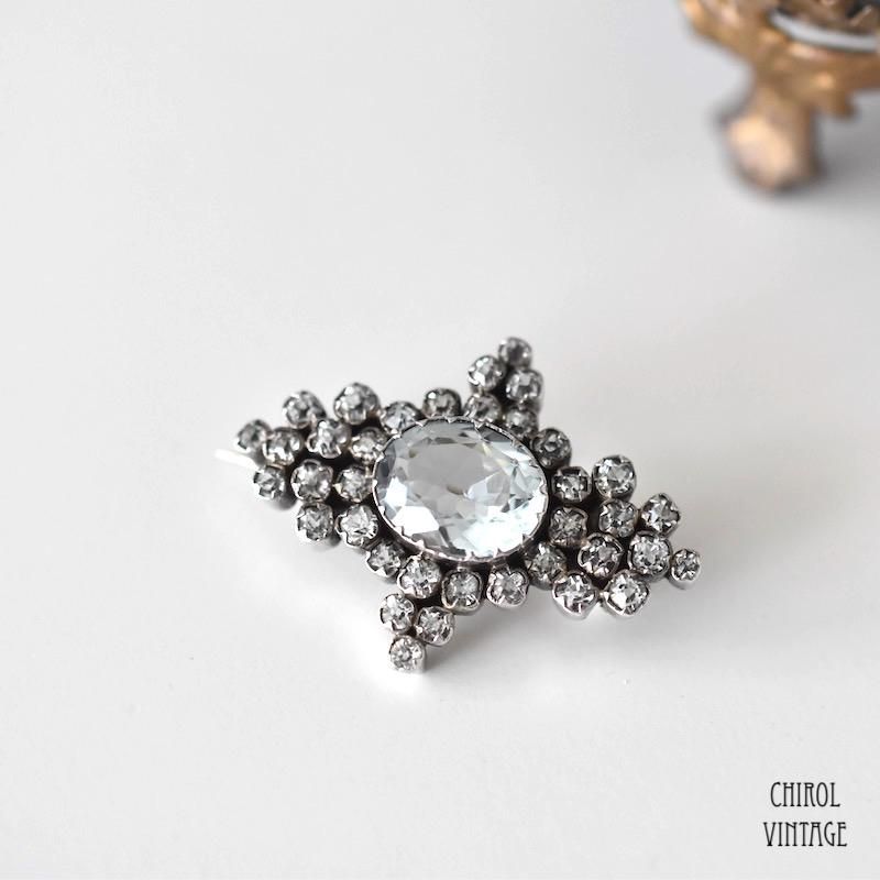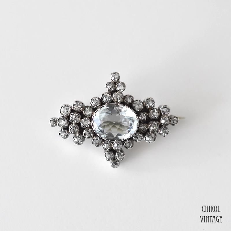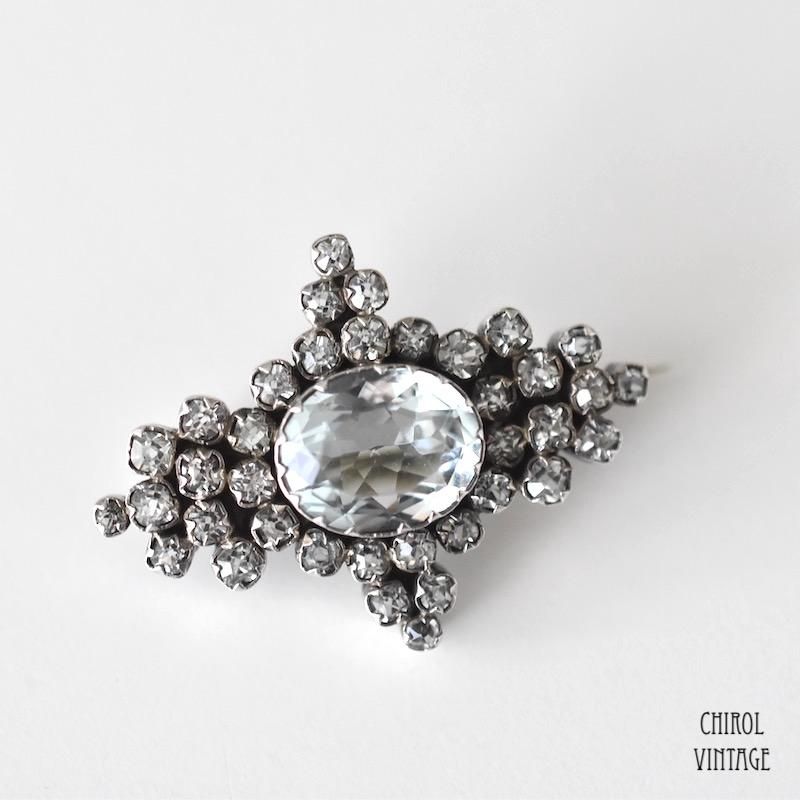 小さなロッククリスタルがスターダストのように煌びやかに輝く、ヴィクトリアン中期のシルバーブローチ。