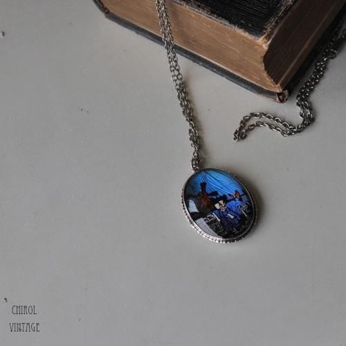 バタフライウィングジュエリーではよく用いられるペイントデザインで、風車と女の人が二人描かれた、オランダのカントリー風景です。