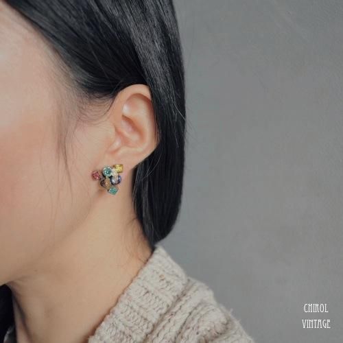 透明感あるカラフルなビジュストーンがキュートなスクリューイヤリング。