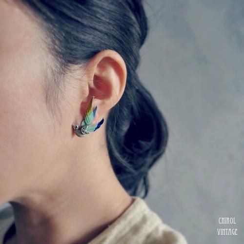 エナメルバード マーカサイトイヤリング