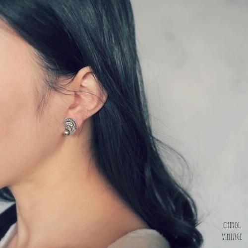 マーカサイトxパール シルバーシェルイヤリング