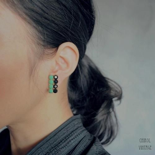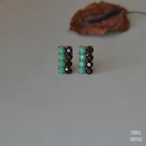 ヴィンテージでもあまり見かけることのないミルクグリーンのラインストーンがユニーク。