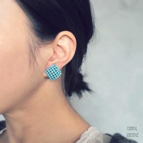 鮮やかなターコイズカラーが印象的で、すっきりとクールな雰囲気のクリップイヤリング。